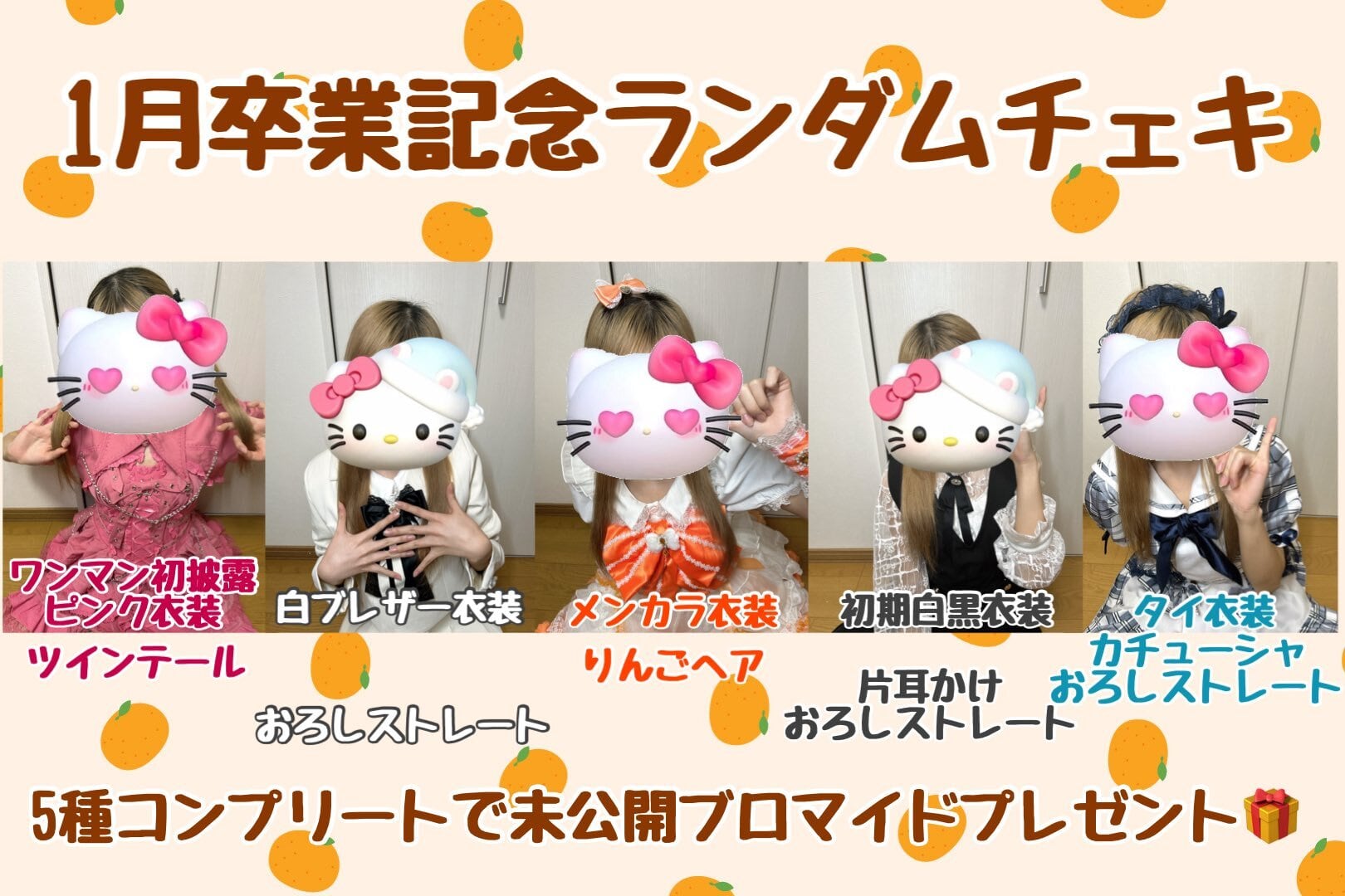 今まで着た5種類の衣装の思い出チェキになります。